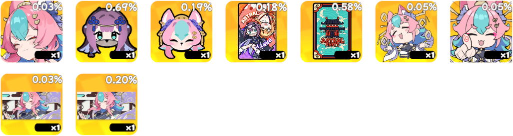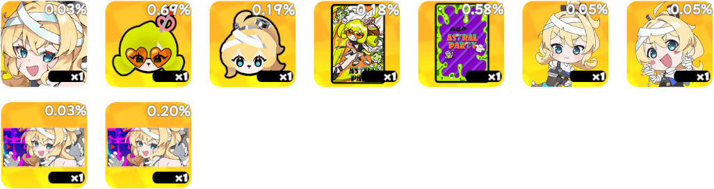 | 抽選券×10 | 13.00% | 宇宙バッジ×3 | 7.50% |